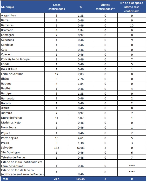 Estes números representam notificações oficiais compiladas pelo Centro de Informações Estratégicas em Vigilância em Saúde da Bahia (Cievs-BA), em conjunto com os Cievs municipais.