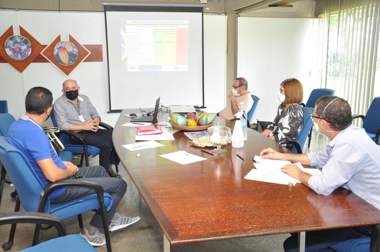 Participaram da reunião os secretários de Agricultura, Fredson Santos; Educação, Miriam Andrade; Administração, Cristiane Arraes e Adson Ramos, assessor especial, além de técnicos da área de difusão de tecnologia da Ceplac.