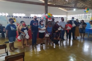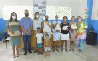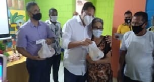 Ao final de seus discursos, o prefeito Augusto Castro e o presidente da Fundação Marimbeta, Valter Silva, fizeram questão de distribuir pessoalmente os alimentos para os alunos e famílias beneficiárias do programa.