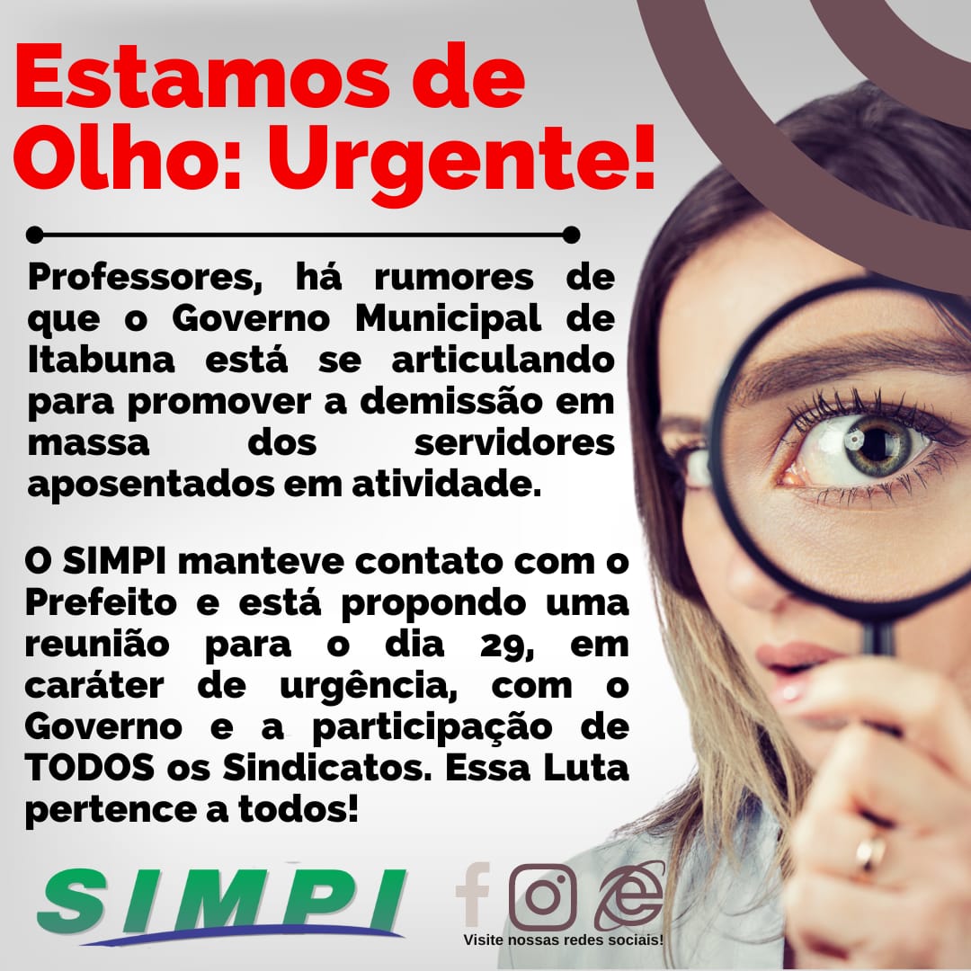 O Sindicato do Magistério Municipal, Simpi, informou que existe uma articulação por parte do governo municipal, para promover a demissão em massa dos servidores aposentados em atividade. O SIMPI manteve contato com o Prefeito e está propondo uma reunião para o dia 29, em caráter de urgência, com o Governo e a participação de todos os professores e Sindicatos.