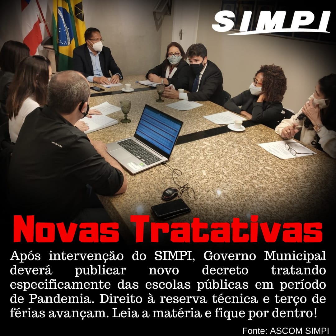 Neste sentido, o Prefeito informou que no início de setembro deverá ser publicado um novo decreto tratando especificamente das escolas públicas. De acordo com a Secretária de Educação, Profa. Janaína Araújo, apenas dez escolas do município estariam aptas a receber os alunos neste momento. Tal situação demandará uma nova análise do município acerca do possível retorno às aulas. O advogado do SIMPI, Dr. Antônio da Lapa deixou claro que a imunização dos professores não foi o único critério defendido pelo sindicato para o retorno, mas também a adequação dos prédios às normas de segurança contra a Covid-19. “O Governo demonstrou-se sensível às nossas alegações e acreditamos que o novo decreto traga uma proposta mais sensata sobre a impossibilidade de reabertura das escolas neste momento”, afirma o advogado.