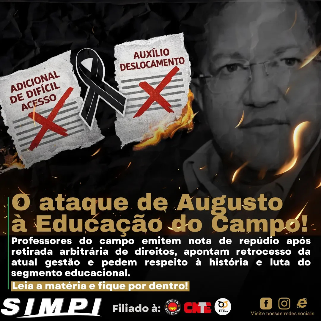 Dentre os segmentos educacionais que mais enfrentam desafios para atuar dignamente, sem dúvida, estão as escolas do campo, cujos professores, fazem verdadeiros malabarismos para garantir a formação de diversos alunos que vivem na zona rural. Infelizmente, a gestão Augusto Castro, além de não reconhecer a importância desses profissionais, resolveu promover mais um ataque à educação, retirando direitos conquistados há décadas pela categoria, como o auxílio deslocamento e a gratificação de difícil acesso.