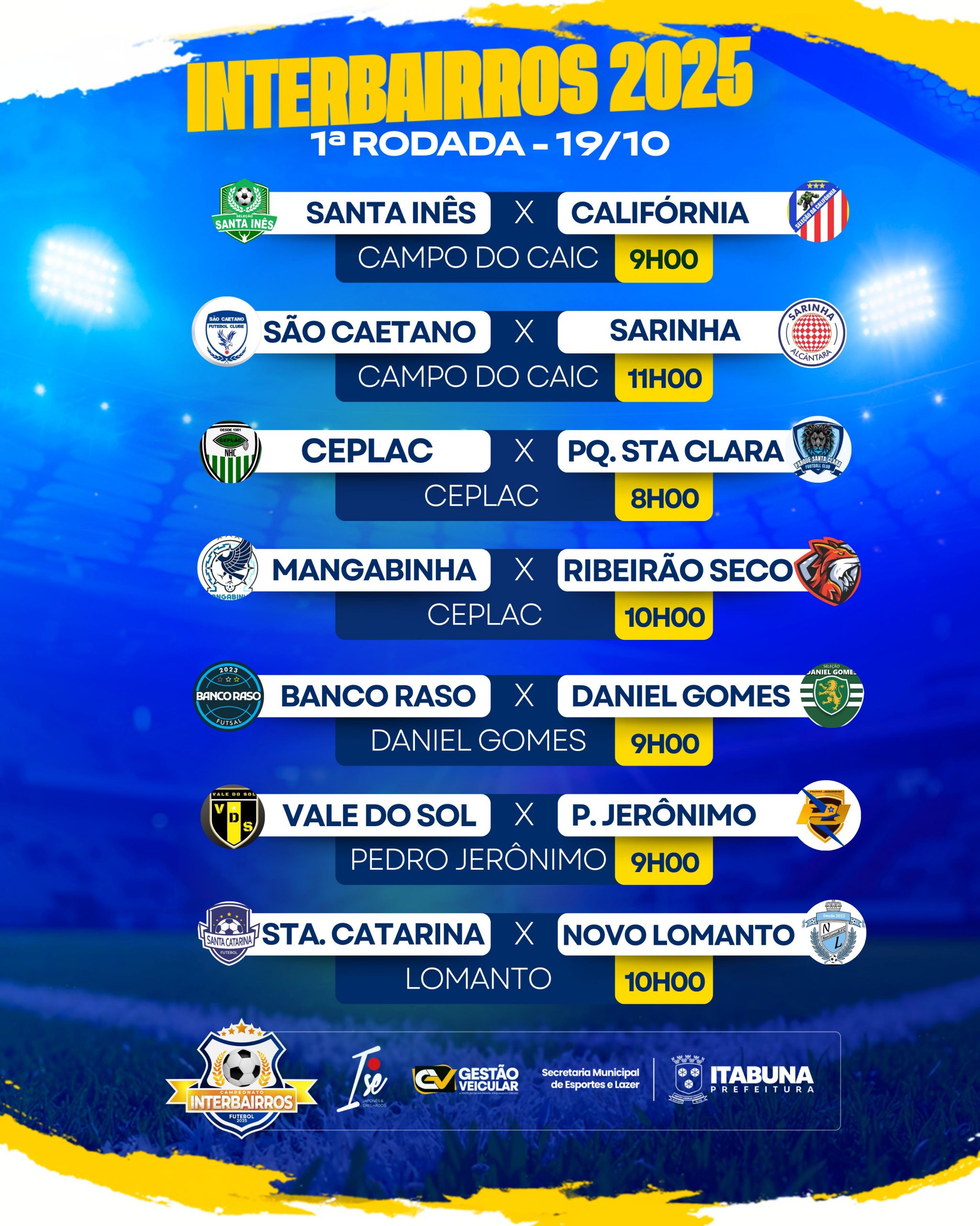 Na rodada inaugural, no Campo do Futebol Amador, no Sarinha Alcântara, o Santa Inês enfrenta o Califórnia. O primeiro, foi campeão da edição do Campeonato Interbairros de Futebol de Itabuna no ano passado, ao vencer a Seleção do Mangabinha nas cobranças de penalidade por 5 a 4, depois de empate em 1 a 1, enquanto o segundo é tetracampeão da competição (2010, 2015, 2022 e 2023).