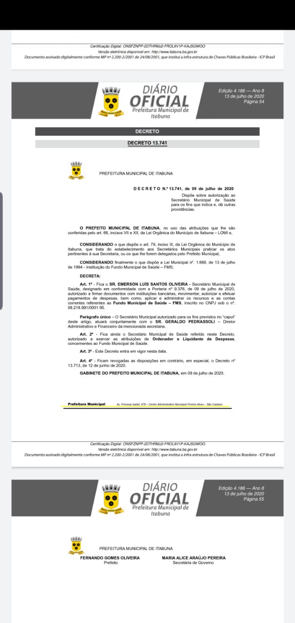 Atualização: A assessoria da prefeitura informou que Emerson é funcionário efetivo da Prefeitura de Itabuna e ocupava o cargo de diretor de Vigilância à Saúde da Secretaria Municipal de Saúde, onde era responsável por coordenar as ações de testagem e monitoramento da Covid-19 no município. Como primeira ação, foram pagos os salários de todos os servidores da Secretaria Municipal de Saúde, efetivos, contratados e comissionados, referente ao salário de junho.