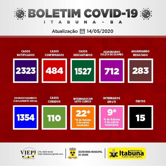 243º óbito: homem, 74 anos, residente em Itaberaba, comorbidades diabetes e hipertensão arterial, veio a óbito dia 08/05, em unidade da rede pública no município.